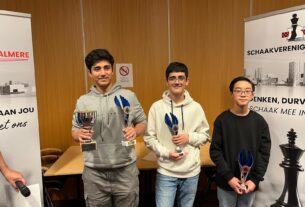 Maar het aller grootste succes was Manasvita Basa die met een score van 6 uit 7 tweede in het toernooi werd. Ze eindigde net achter Yichen Han (7/7), de winnaar van de F-groep. Manasvita was het beste meisje en dus Nederlands Kampioen Meisjes onder de 9 jaar. Een geweldige prestatie – de jeugdafdeling van Schaakvereniging Almere is erg trots op haar. Gefeliciteerd Manasvita!!