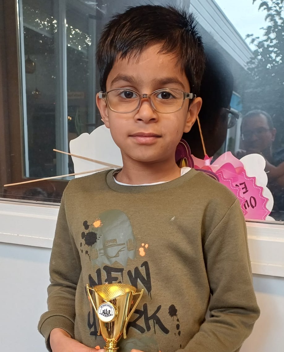 Shaurya had recent juist wat ratingpunten ingeleverd en behaalde nu in groep 8 een mooie derde plaats met 4 punten.