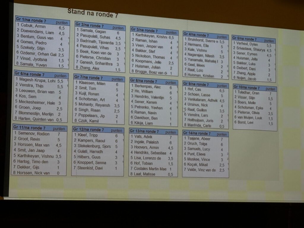 Yuvan S. won geen beker deze keer. In groep 1 behaalde hij 1.5 uit 7.
